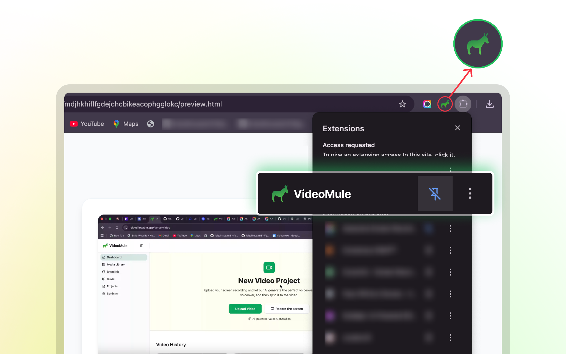 Upload your raw screen capture and let VideoMule write the script, generate a professional voiceover, and sync it to your video automatically.