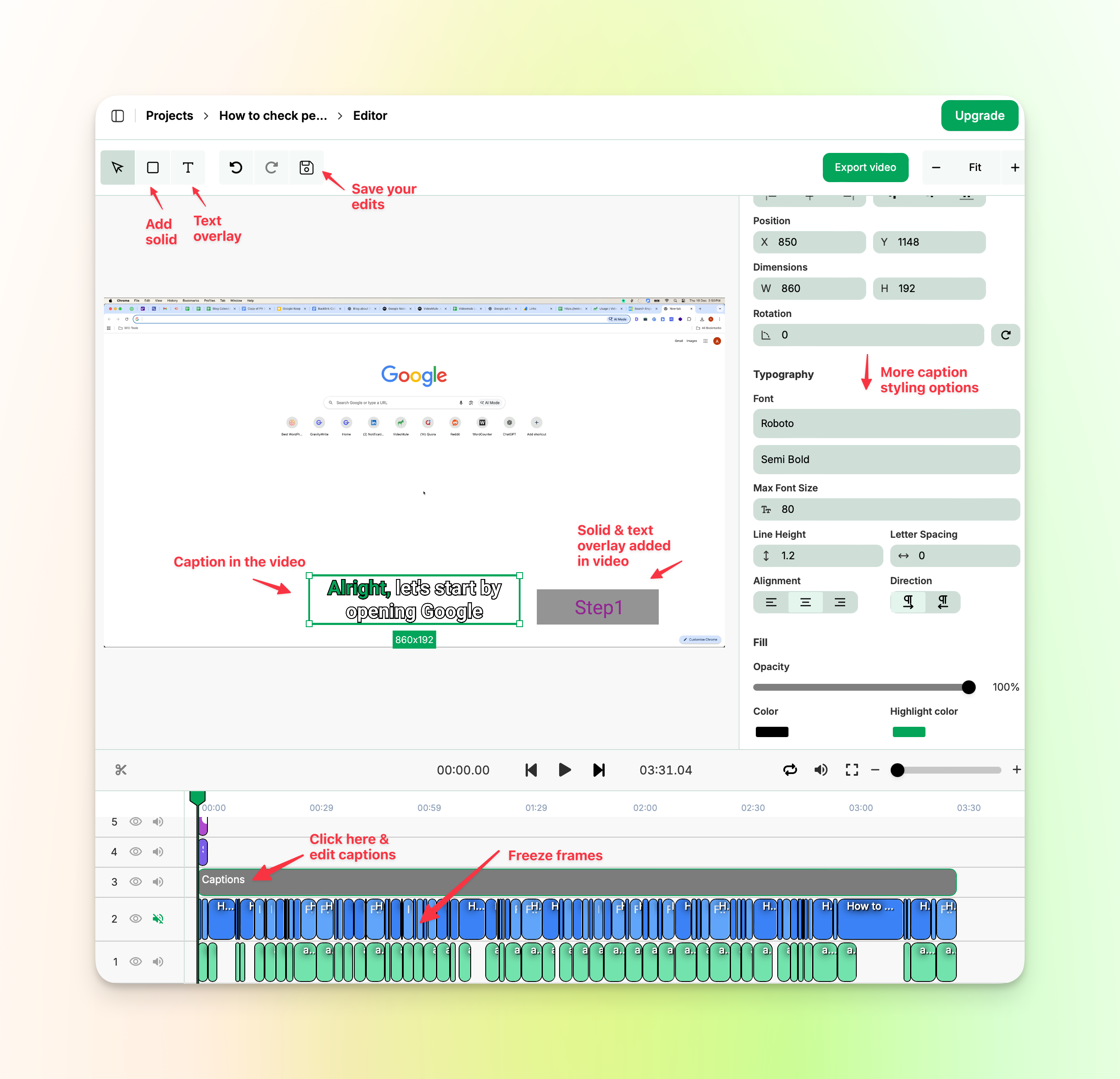 Your captions don't have to look generic. The editor includes styling options that let you adjust how your captions appear on screen.