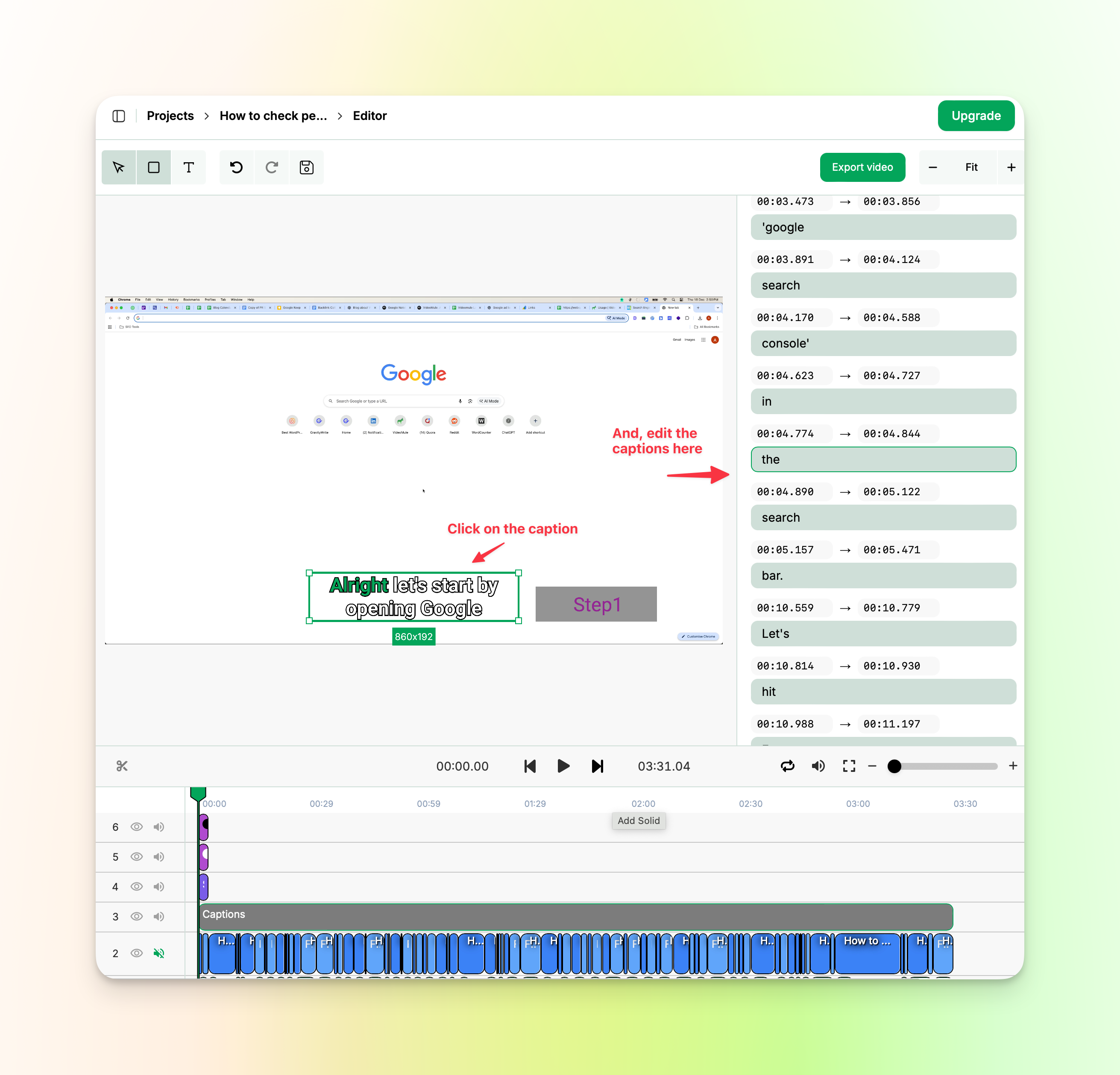 VideoMule automatically generates captions for your video based on the script.